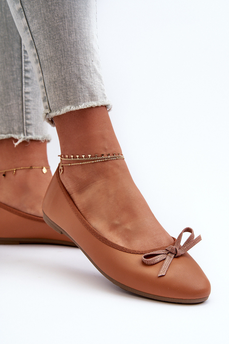Hnedé baleríny z umelej kože s mašľami Sandelal