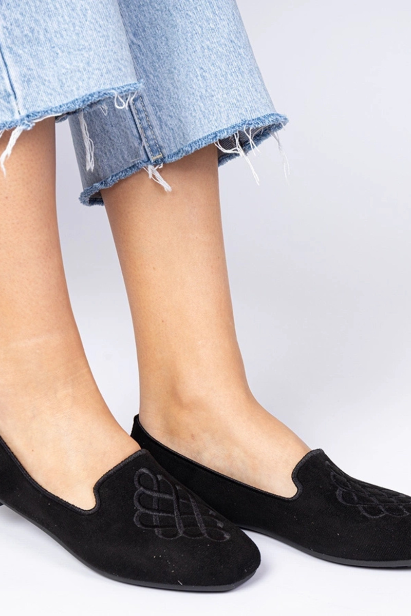 Čierne dámske balleríny z umelej semišovej kože s výšivkou Ronna