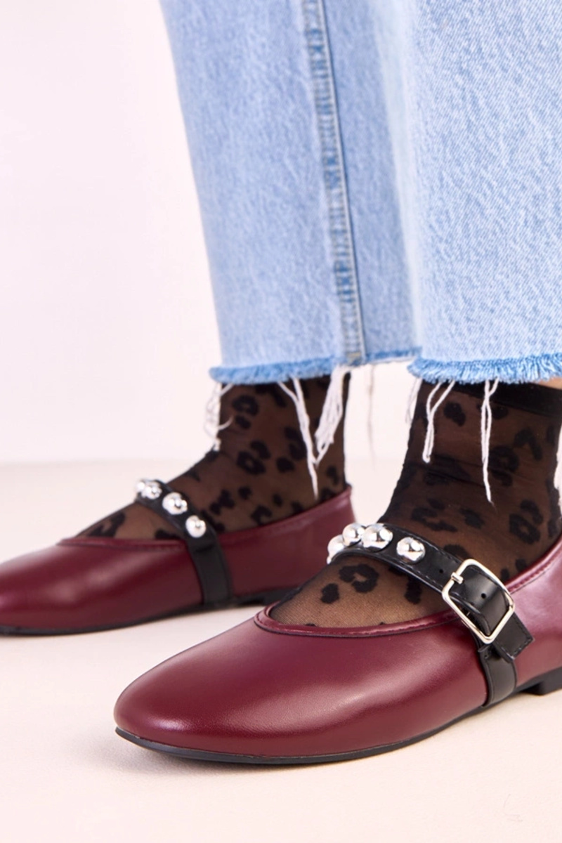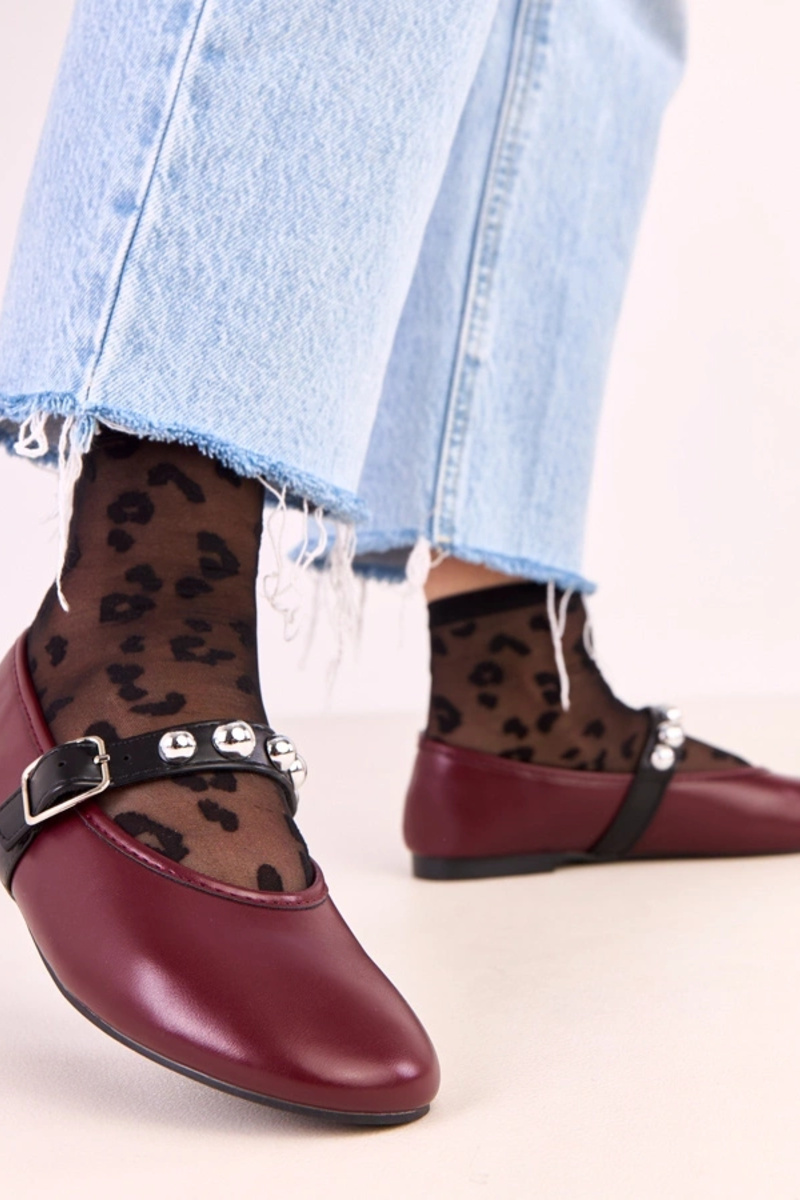 Tmavočervené Faira baleríny s dekoratívnou prackou