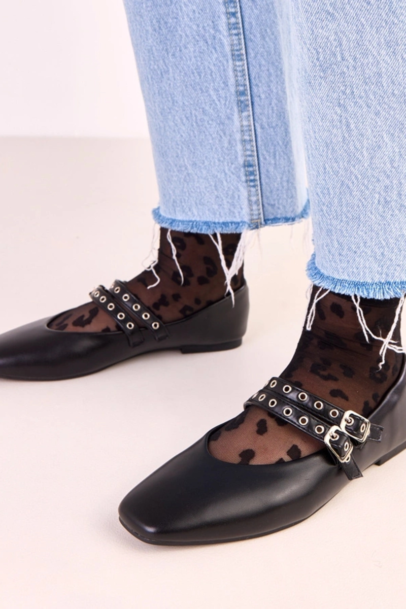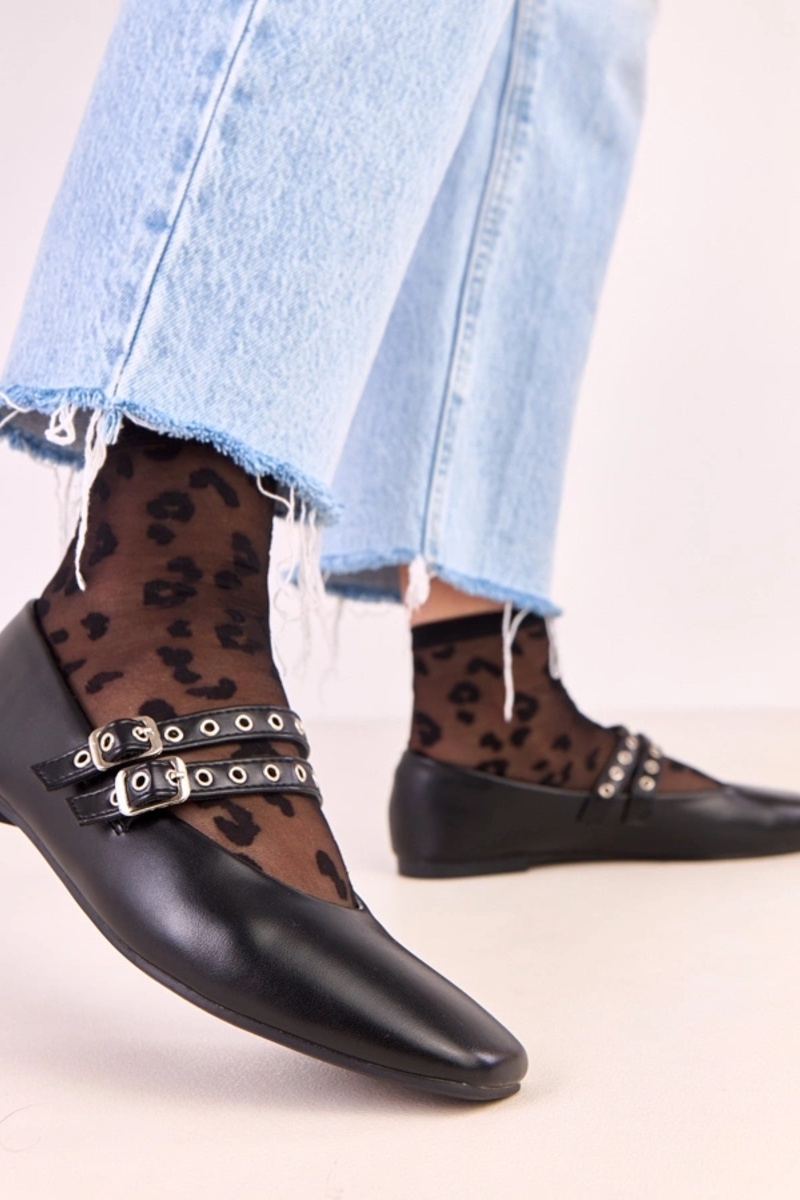 Čierne Alfira baleríny s obdĺžnikovou špičkou a prackami