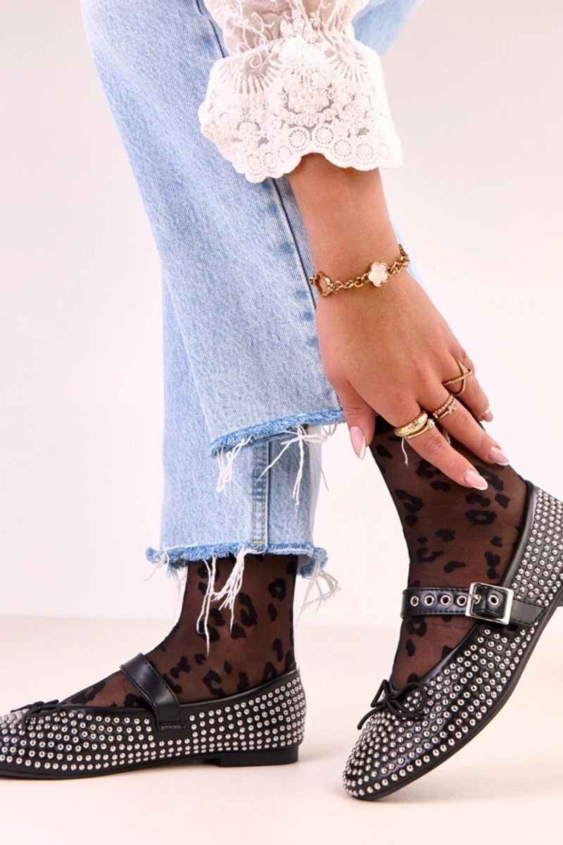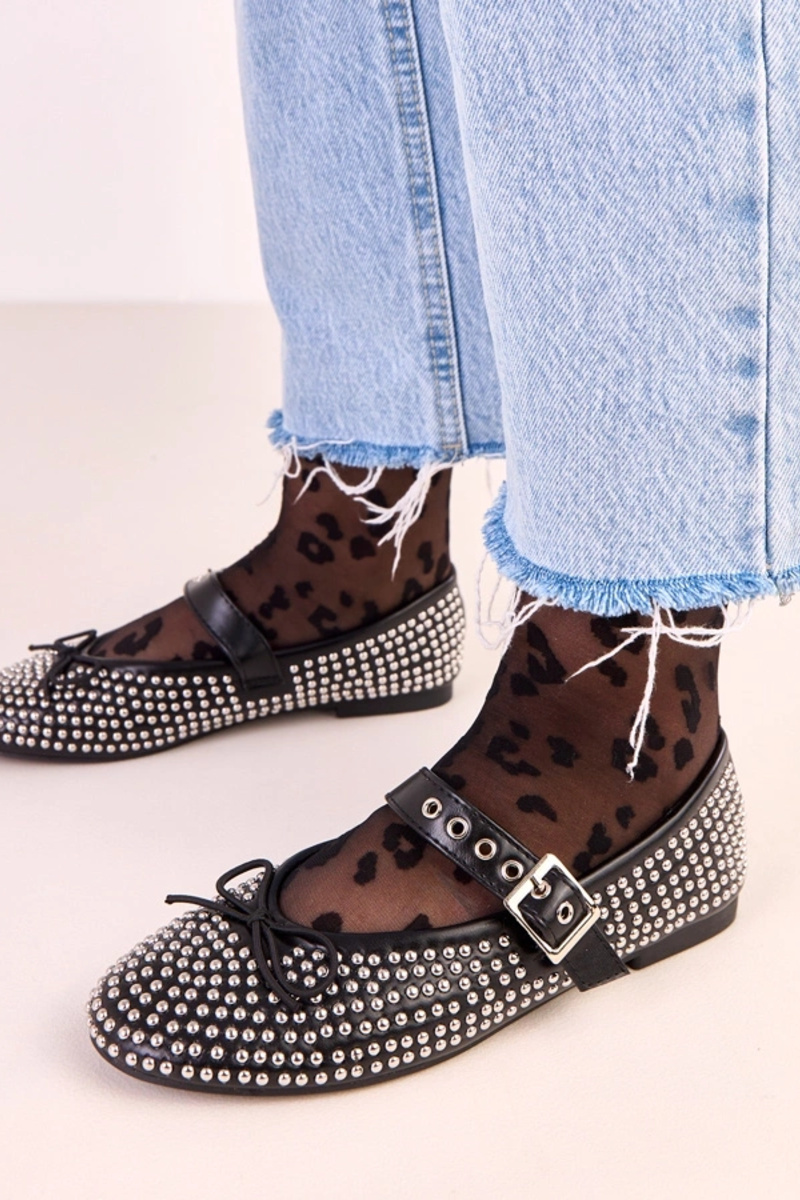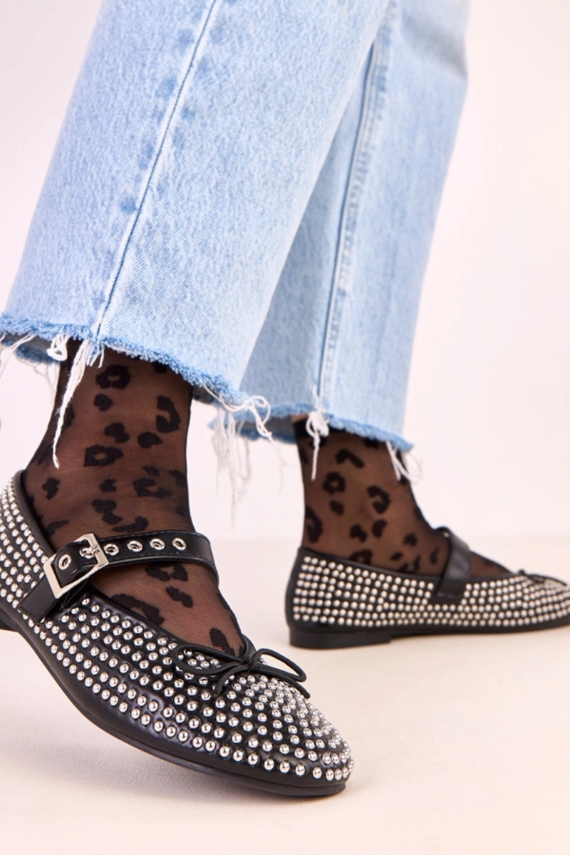 Čierne Mylie baleríny, dekorované cvočkami a stuhou