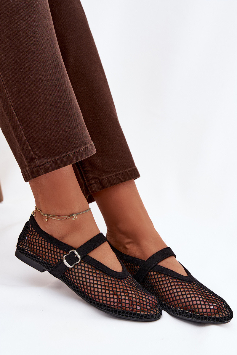 Sieťové baleríny s remienkami čiernych farieb Pherina