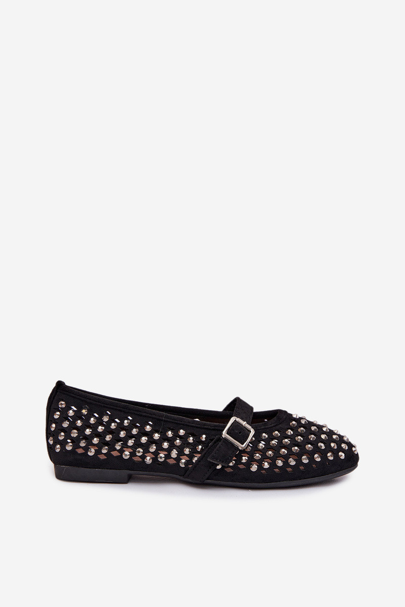 Módne baleríny s čipkovými prvkami a trblietavými kamienkami čierne Nilvessa