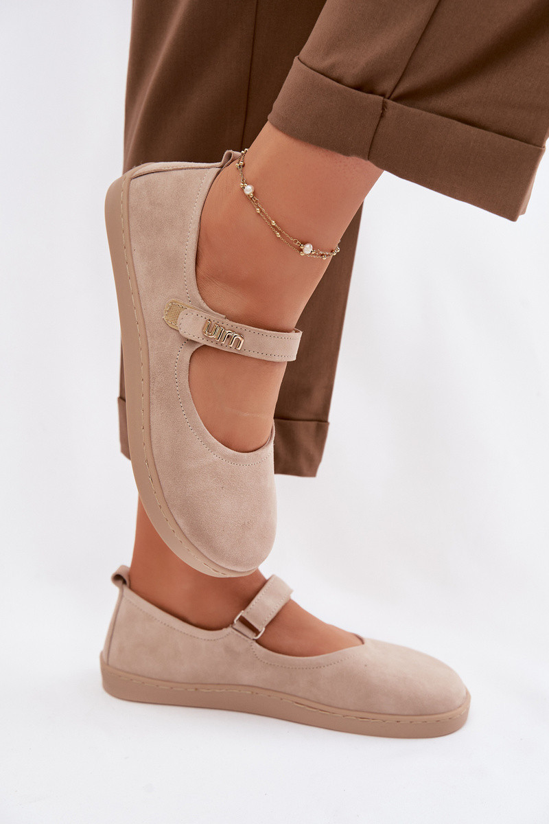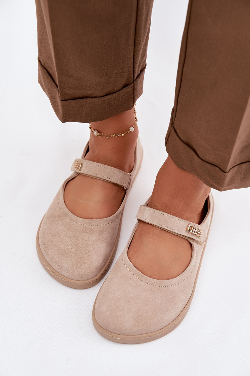 ZazooKožené semišové baleríny Barefoot so remienkami Zazoo 10206 farby piesku