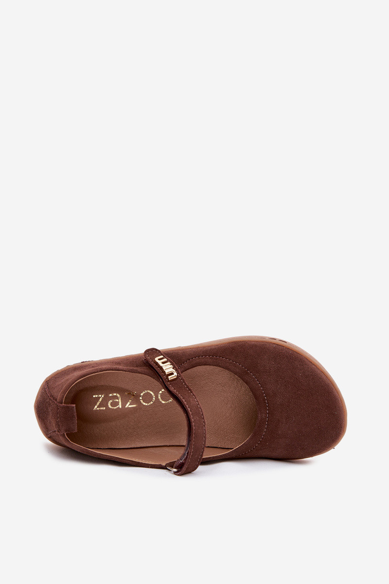 ZazooKožené semišové baleríny Barefoot so remienkami Zazoo 10206 farby čokolády