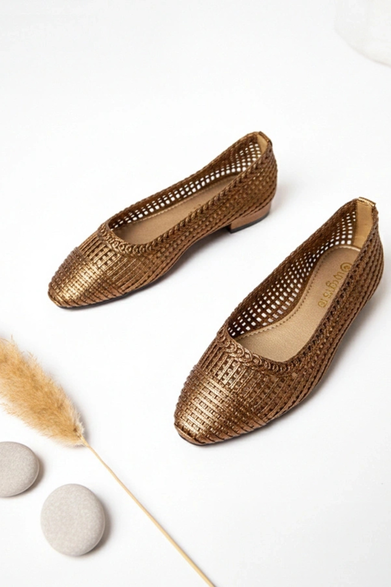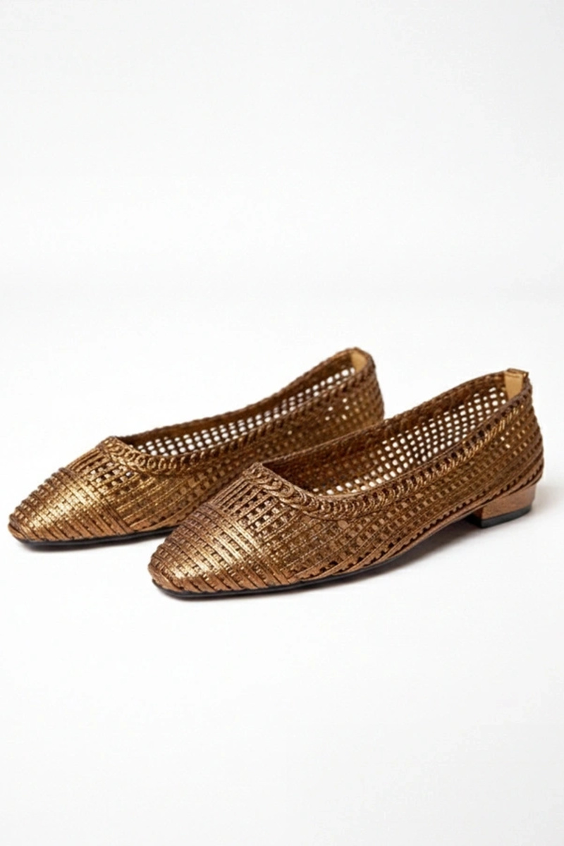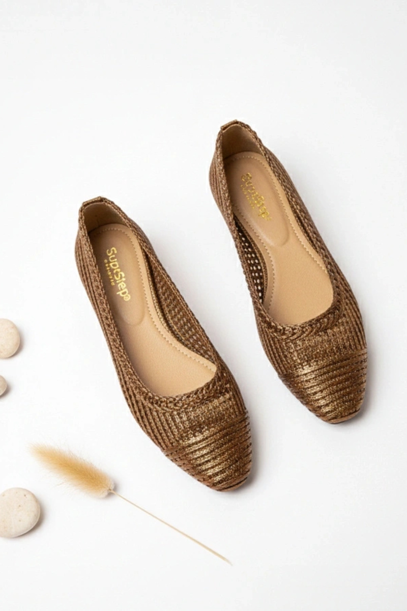 Hnedé čipkované balerínky s malým podpätkom Simone