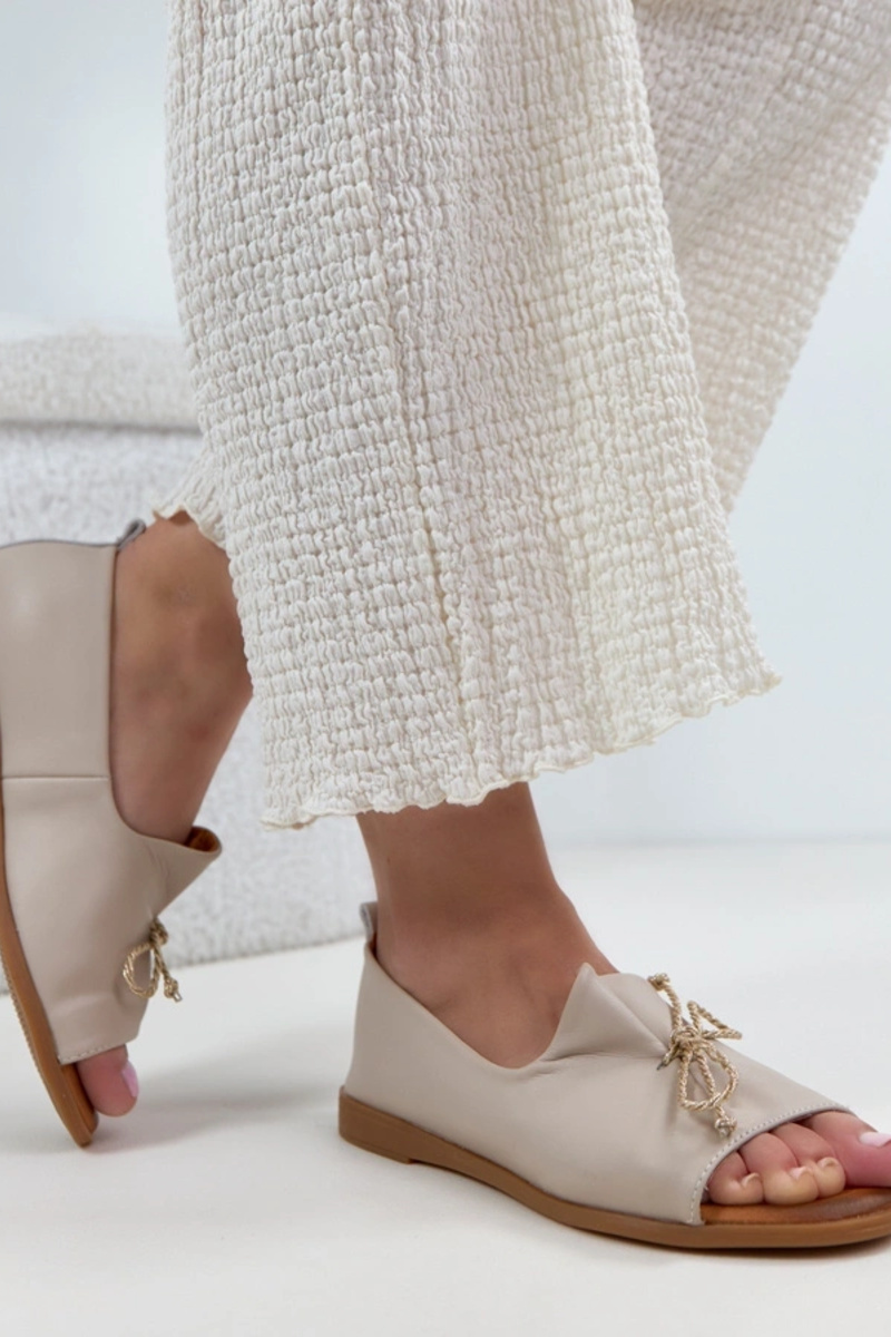 Pieskové kožené balerínky s otvorenou špičkou Cambell