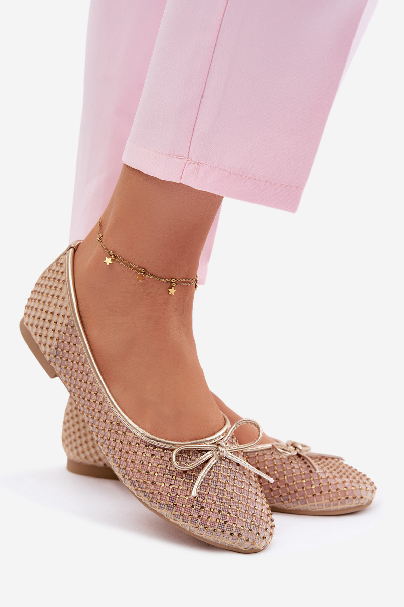 VINCEZASieťované baleríny s dekoráciou Vinceza 62270 zlaté