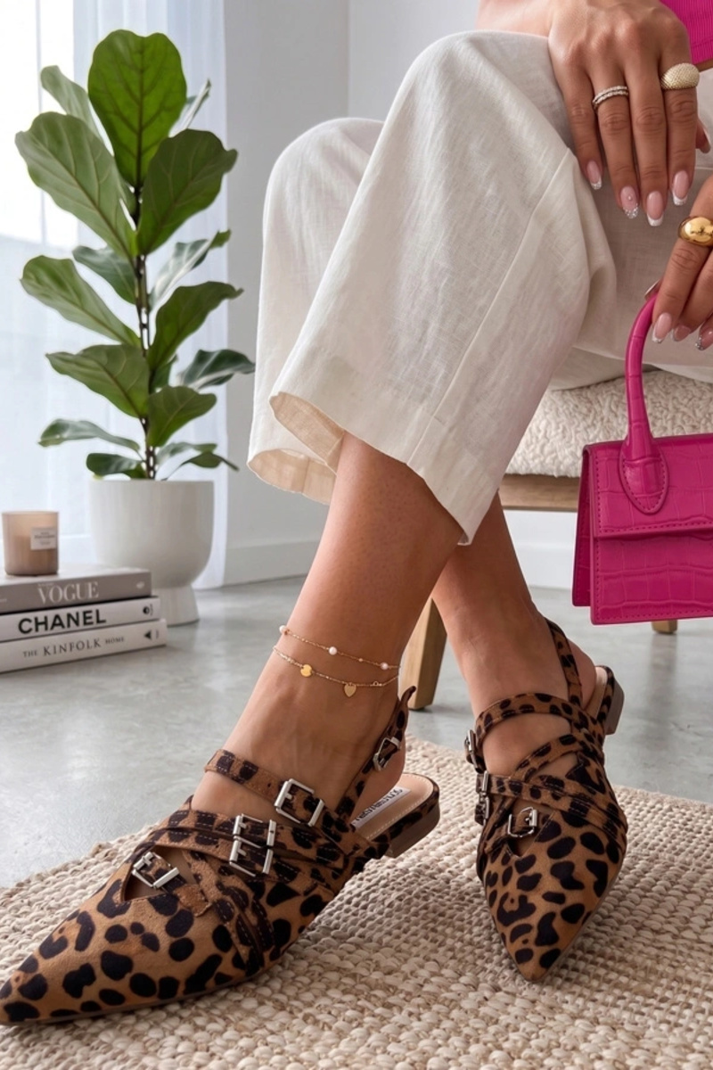 Baleríny s panterím vzorom a otvorenou pätou zdobené stužkami Theodora