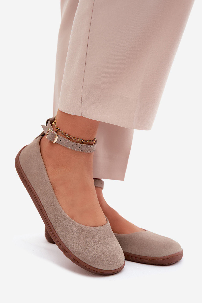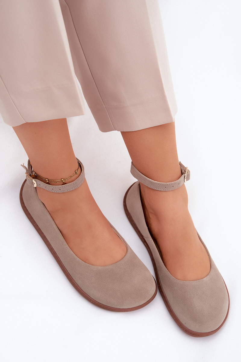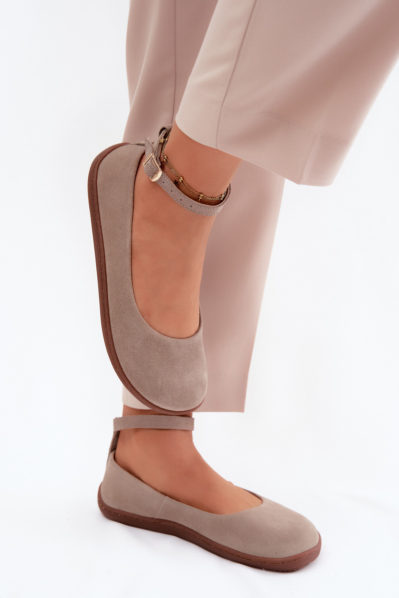 Balerínky BarefootZapnutéturalnego zo semišuu Zazoo 020 farba cappuccino