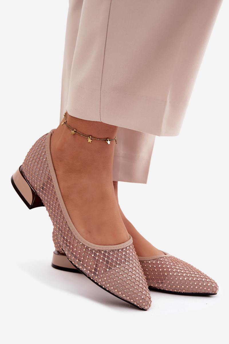 Balerínky Zapnuté nízkom opätku Sieťovina S Dekoráciou Vinceza 62294 béžová