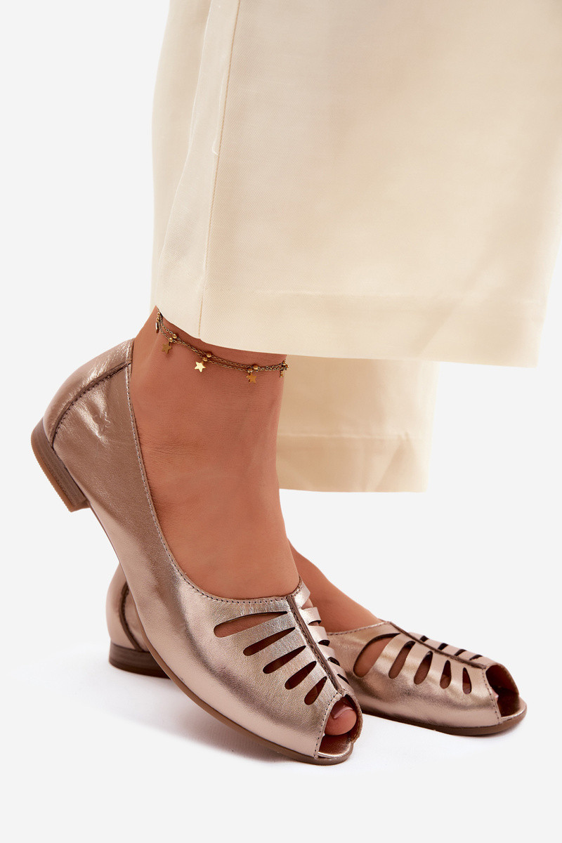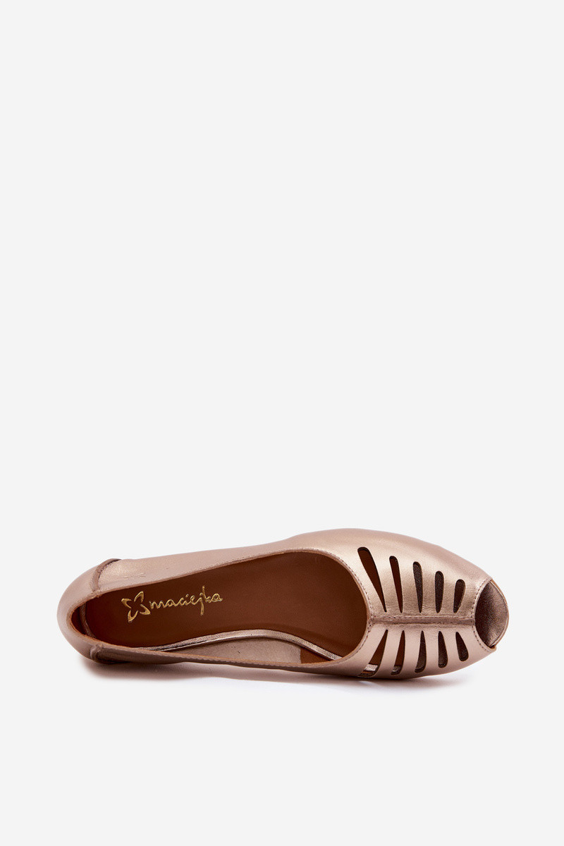Prelamované balerínkyZapnutéturalnej Skóry Máciejka P7541-32 zlatej farby