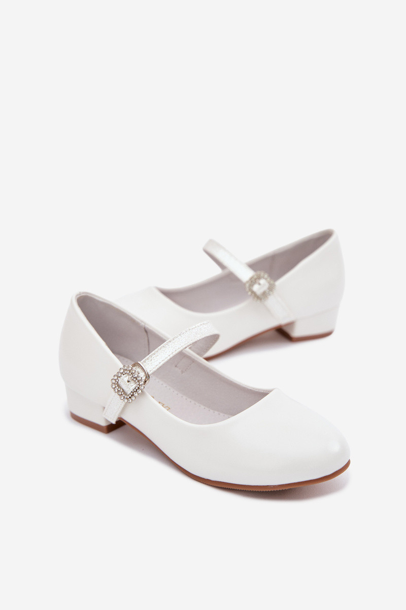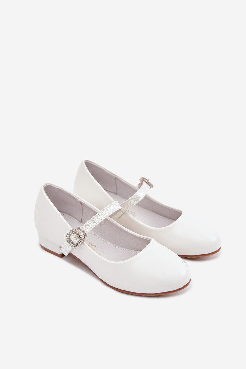 Detské baleríny s trblietkami a stužkami Vinceza 13291 biele
