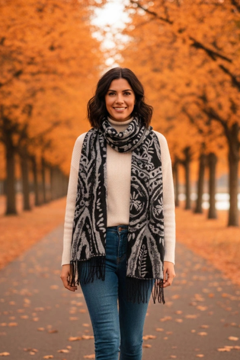Čierno-biely šál s kvetinovým vzorom Colonie