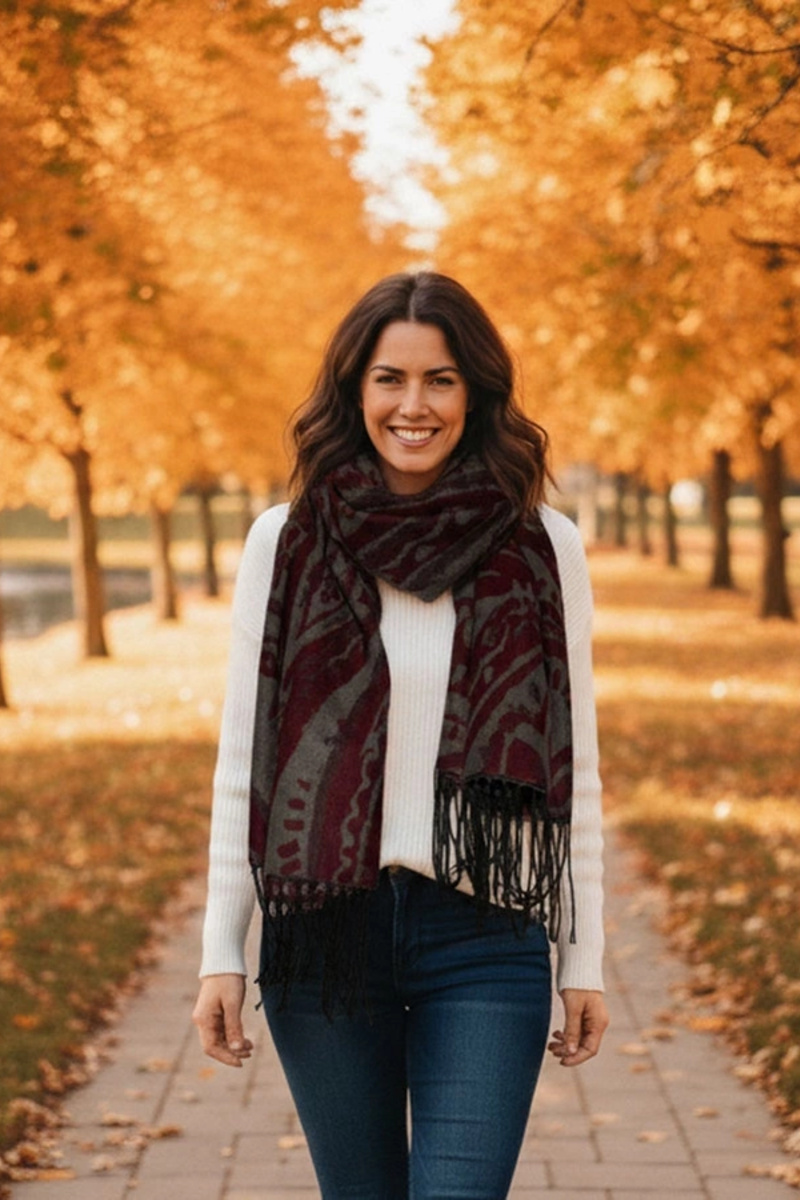 Sivo-bordový šál s kvetinovým vzorom Colonie