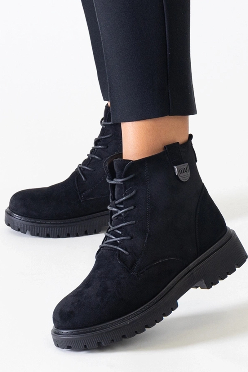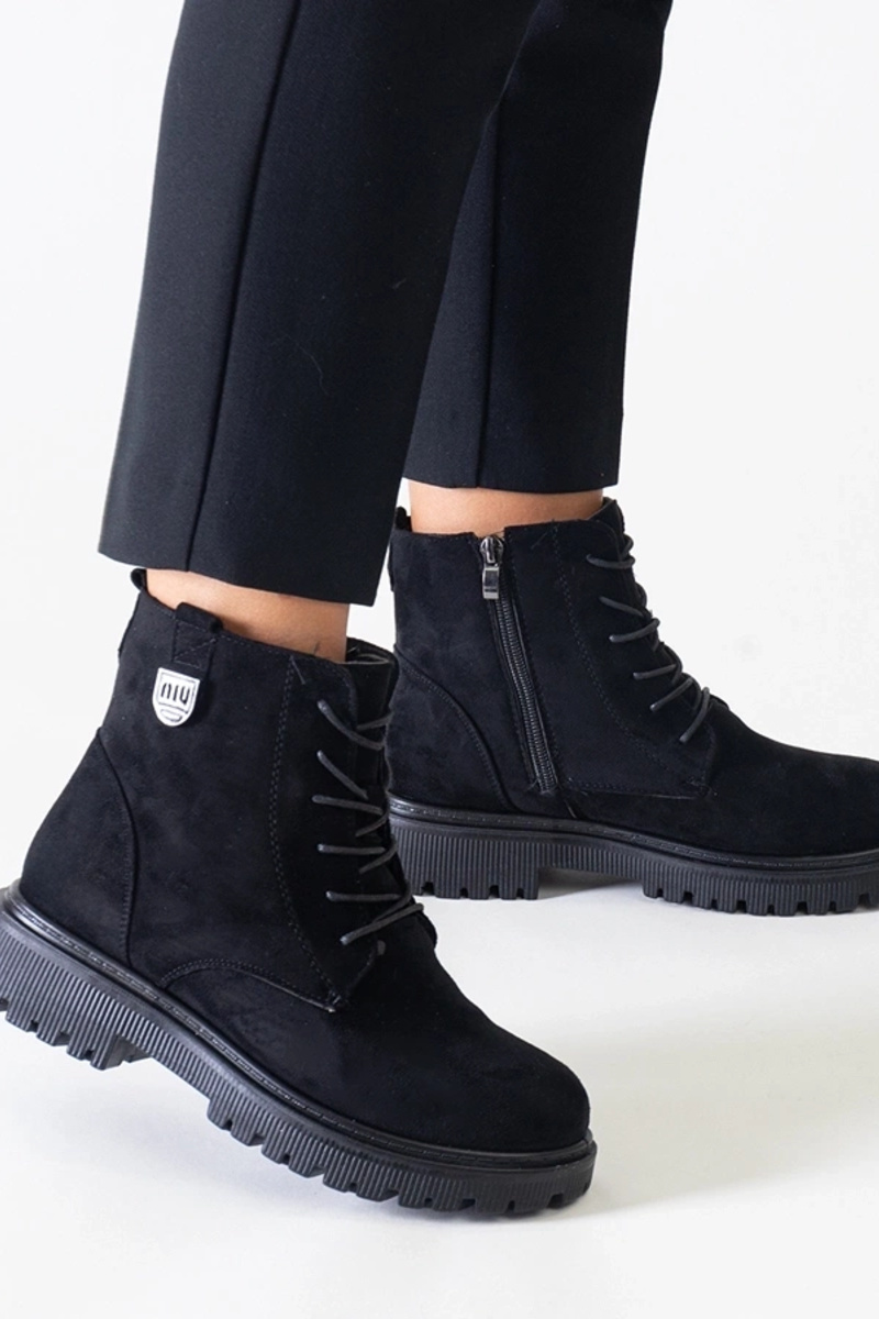 Čierne pracovné topánky z umelej semišovej na platforme Leonora