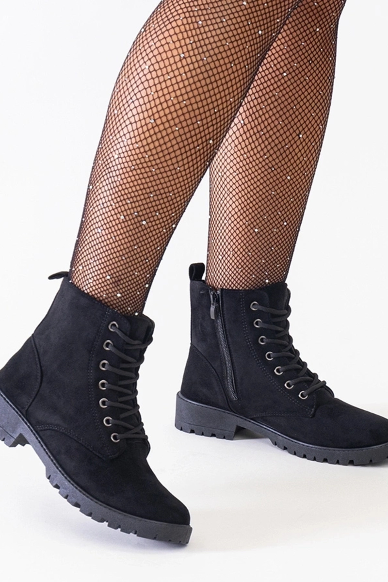 Čierne pracovné topánky z umelej semišovej na platforme Barosa