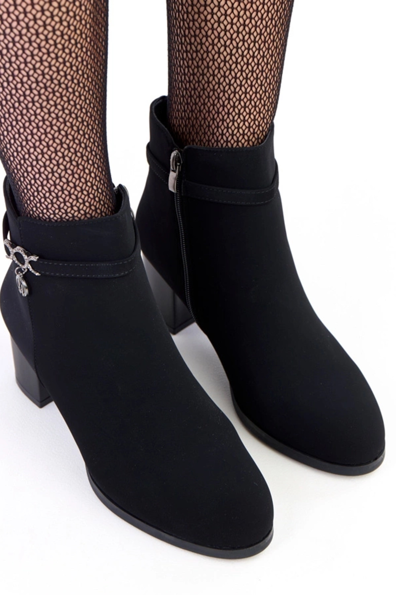 Čierne čižmy s dekoratívnym eko-koženým remienkom Vernona