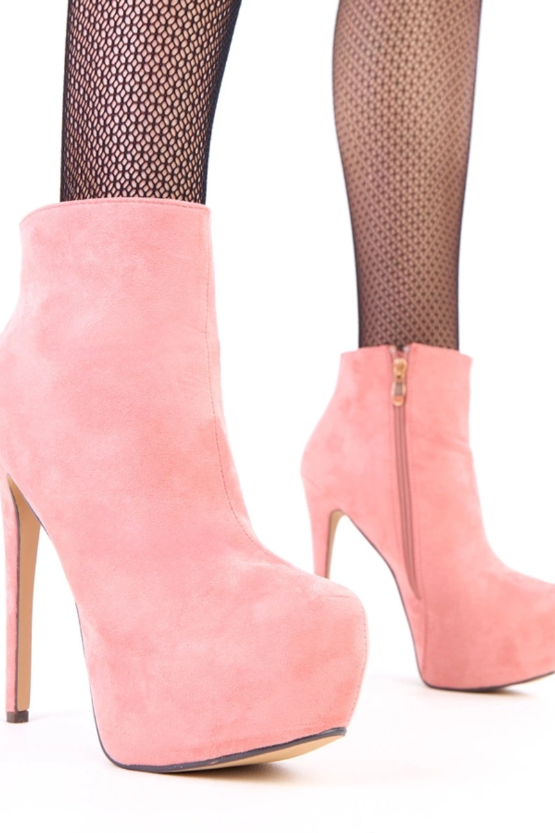 Ružové semišové topánky s platformou a špicatými podpätkami „Riley"