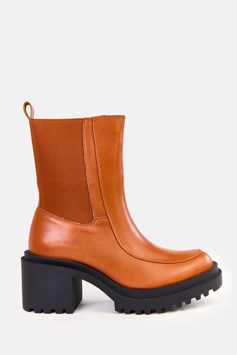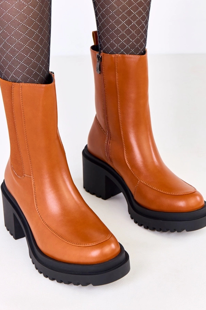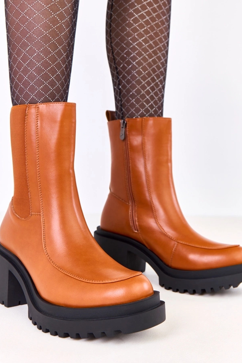 Hnedé kotníkové čižmy na podpätku s elastickým dielom Jarley