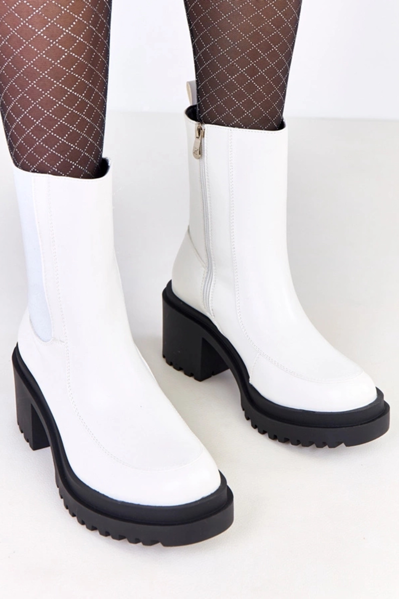 Biele kotníkové čižmy na podpätku s elastickým dielom Jarley