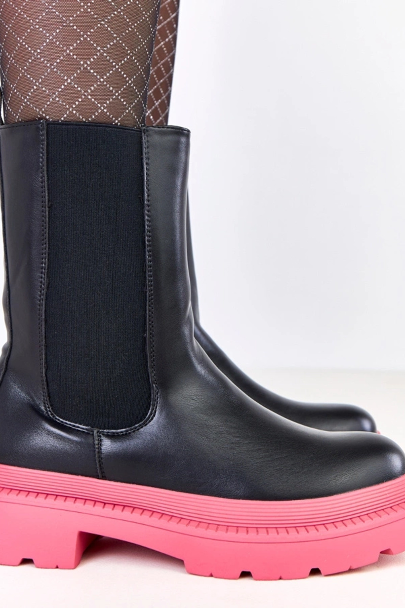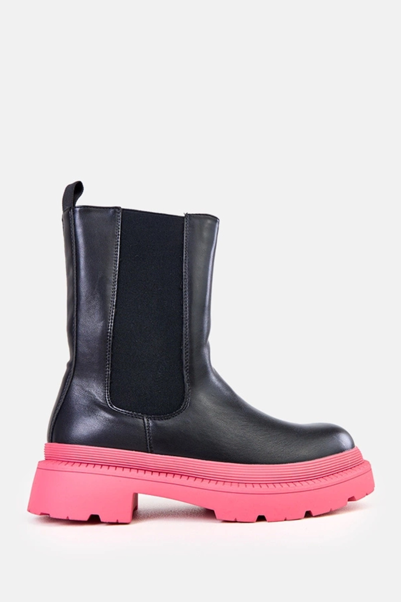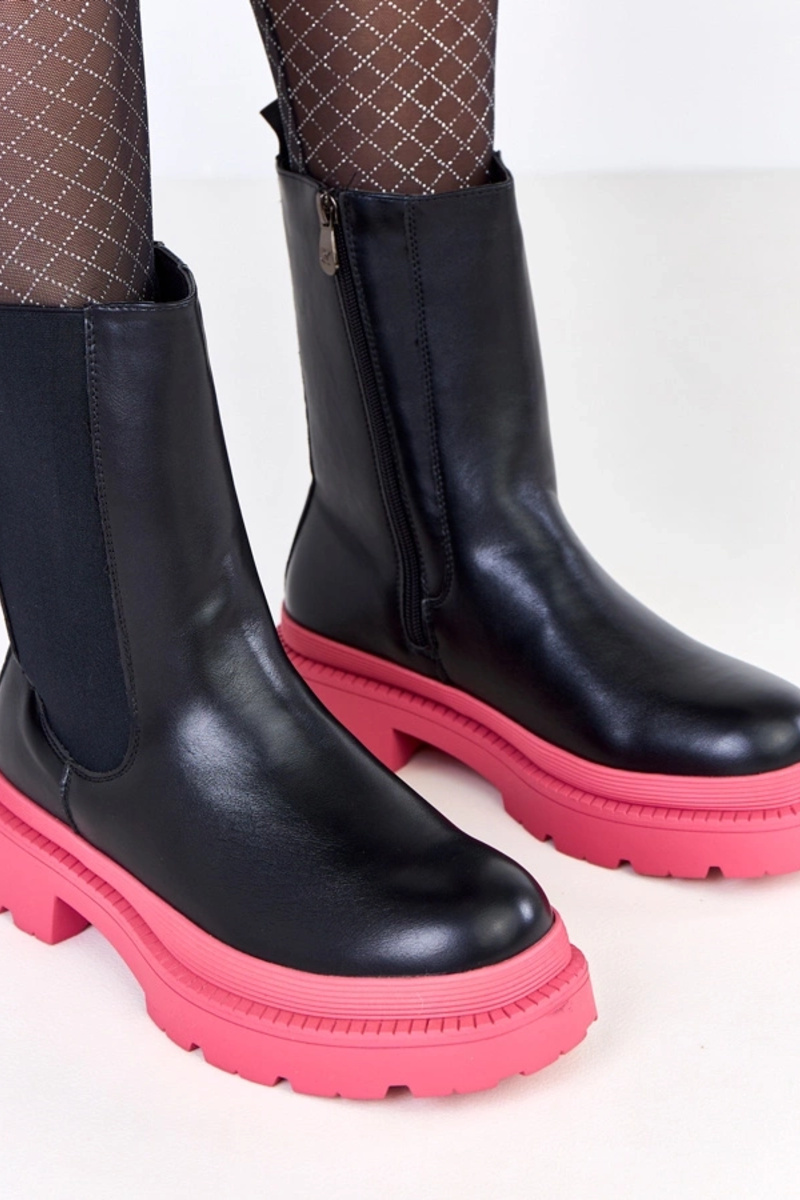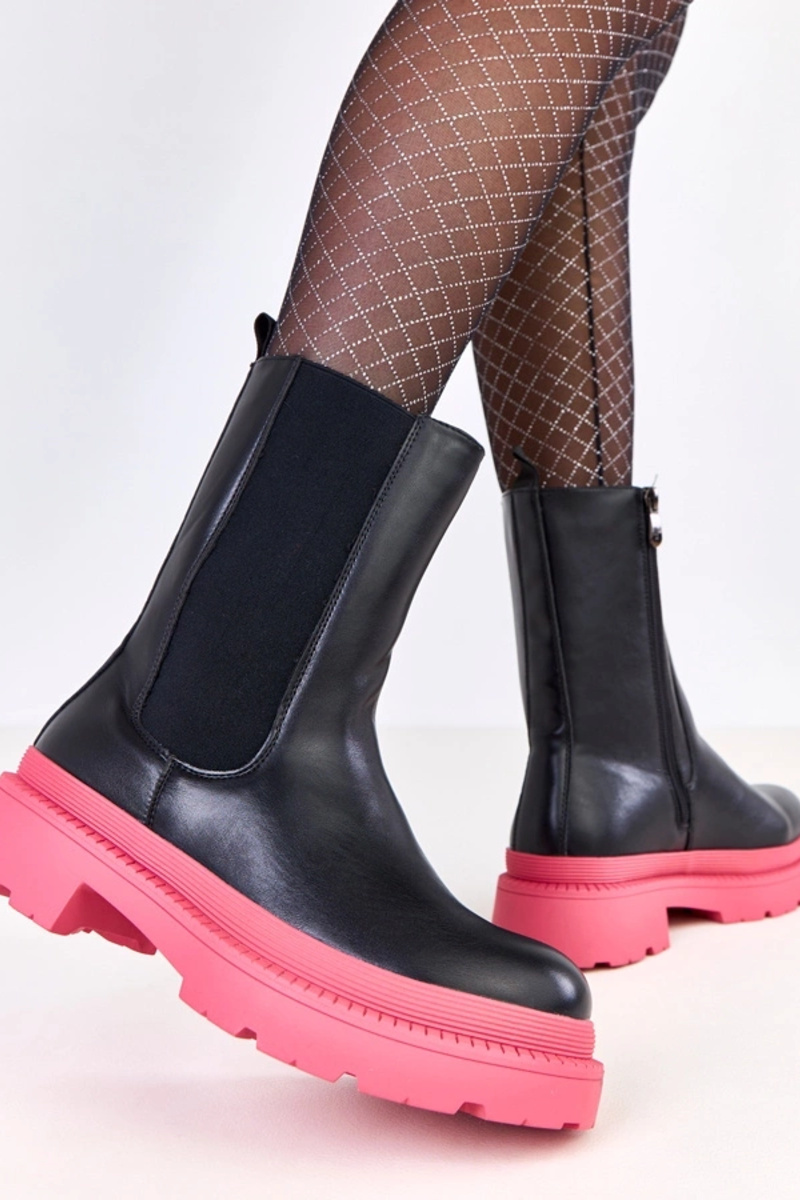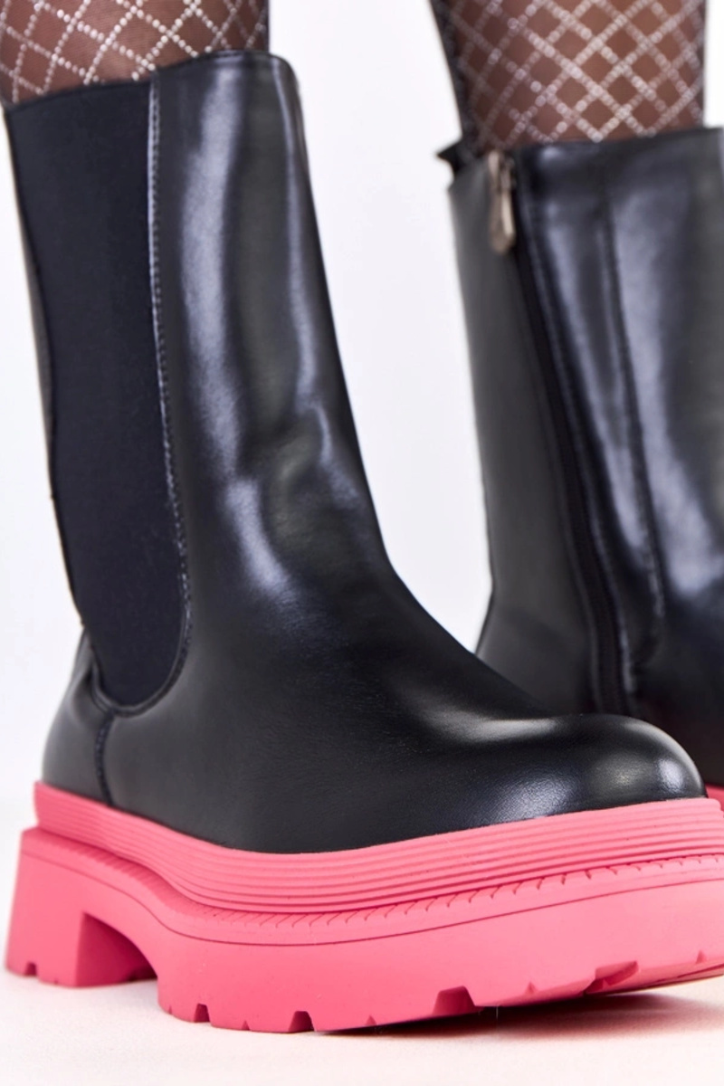 Čierne kotníkové čižmy s ružovou podrážkou Fortley