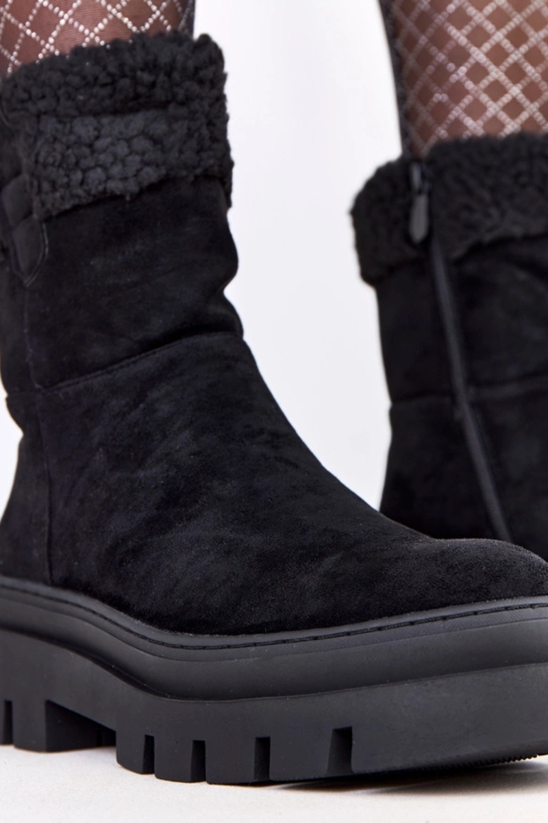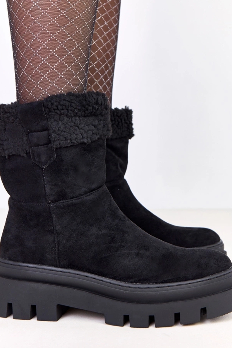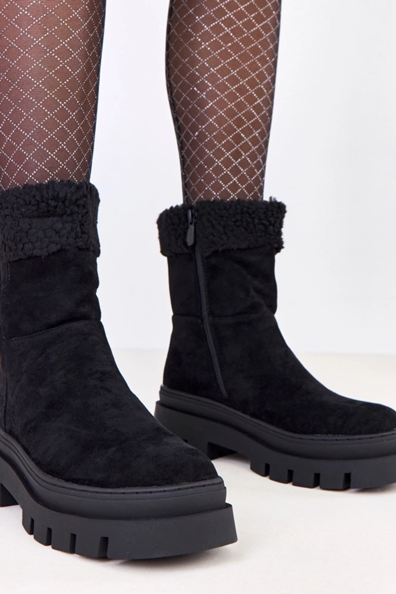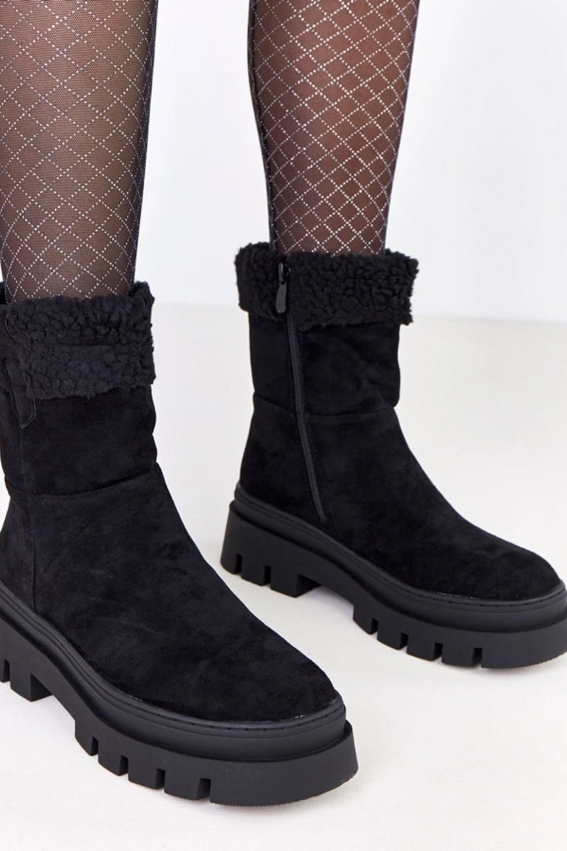 Čierne čižmy s kožúškom na masívnej podrážke Kalerej