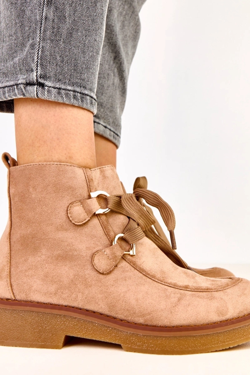 Pieskové teplé topánky s dekoratívnymi šnúrkami, Katrins