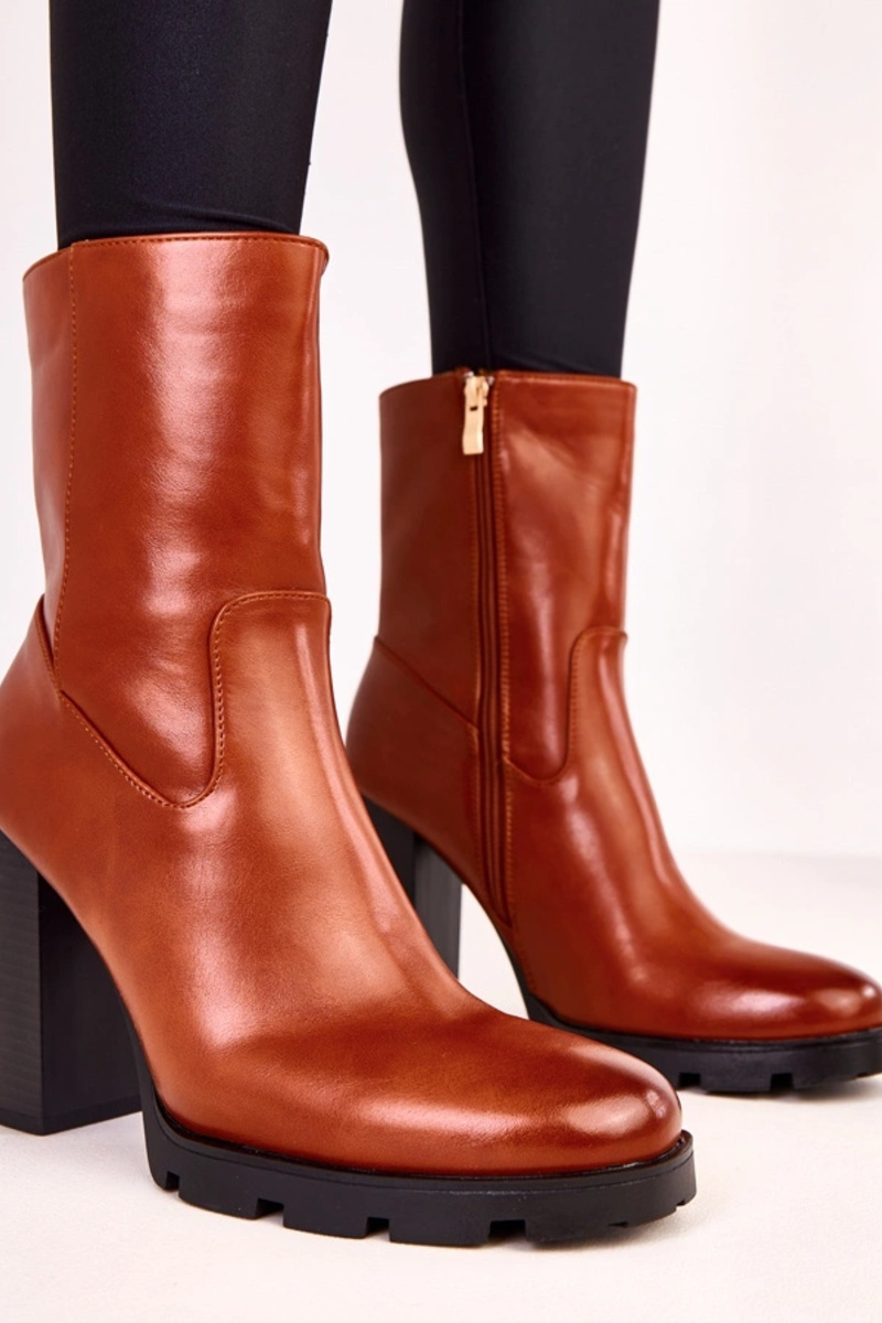 Hnedé dámske čižmy na hrubom podpätku Wendora