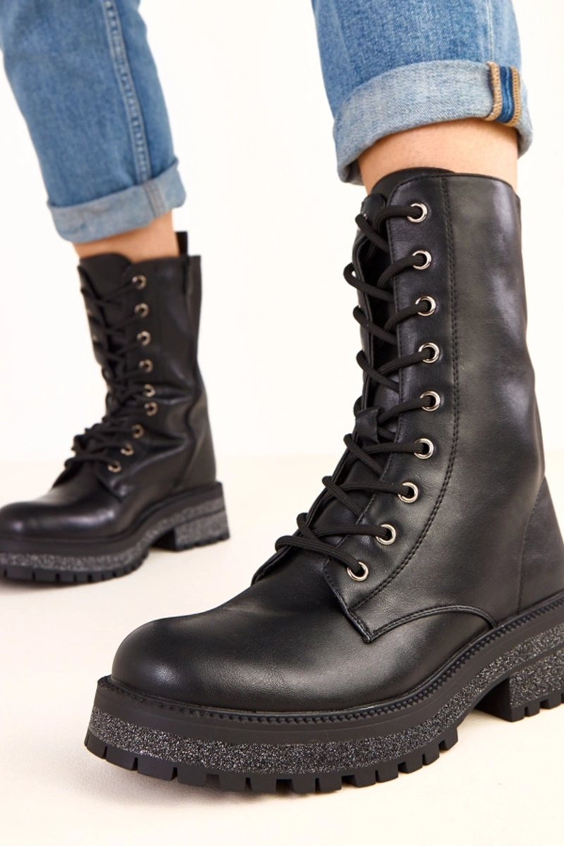 Čierne čižmy s platformou a dekoratívnou podrážkou Asevie