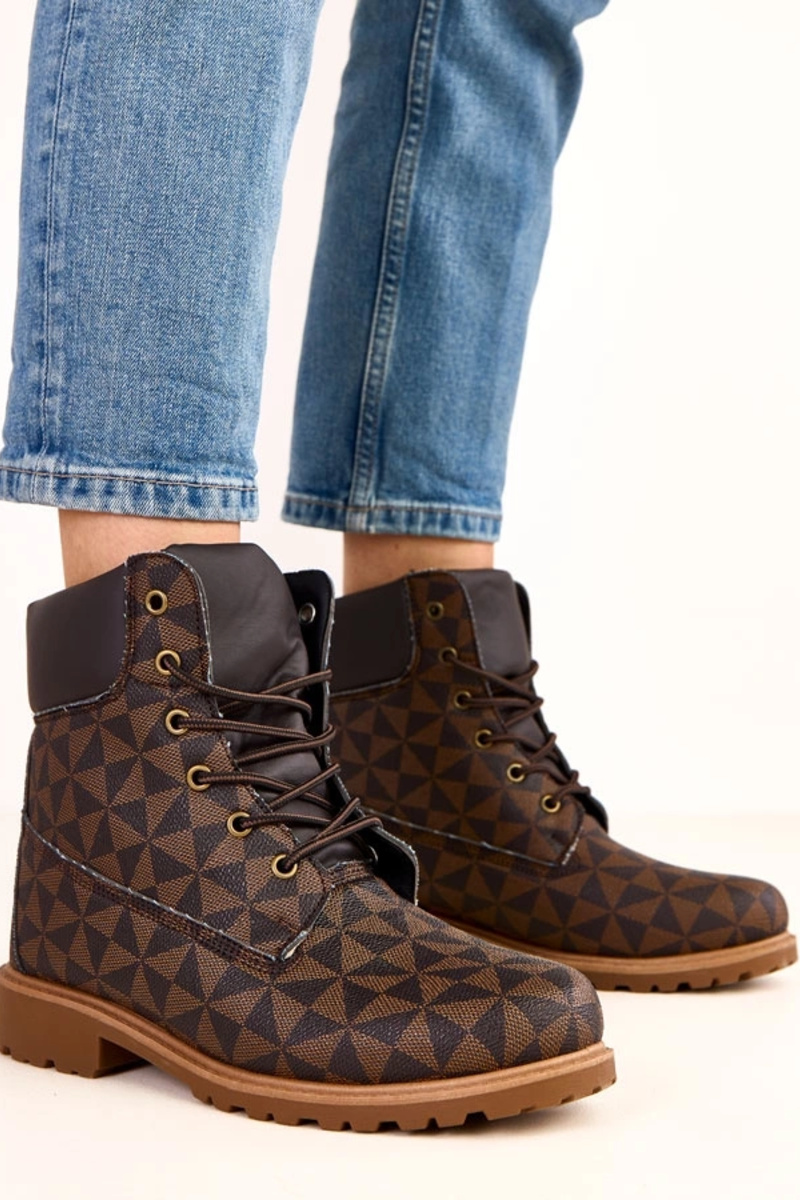 Čierno-hnedé pracovné topánky s geometrickým vzorom Alicia