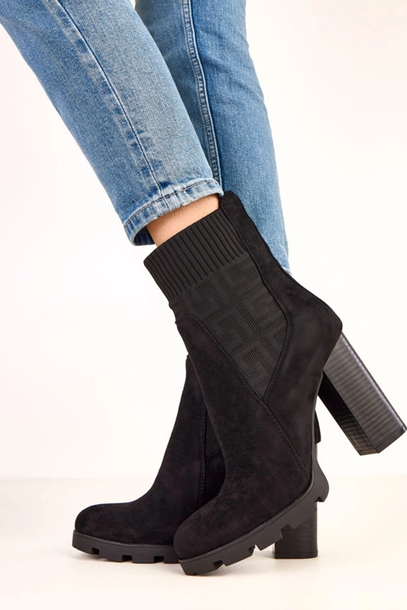 Čierne čižmy na hrubom podpätku s elastickým vsadením Vesira