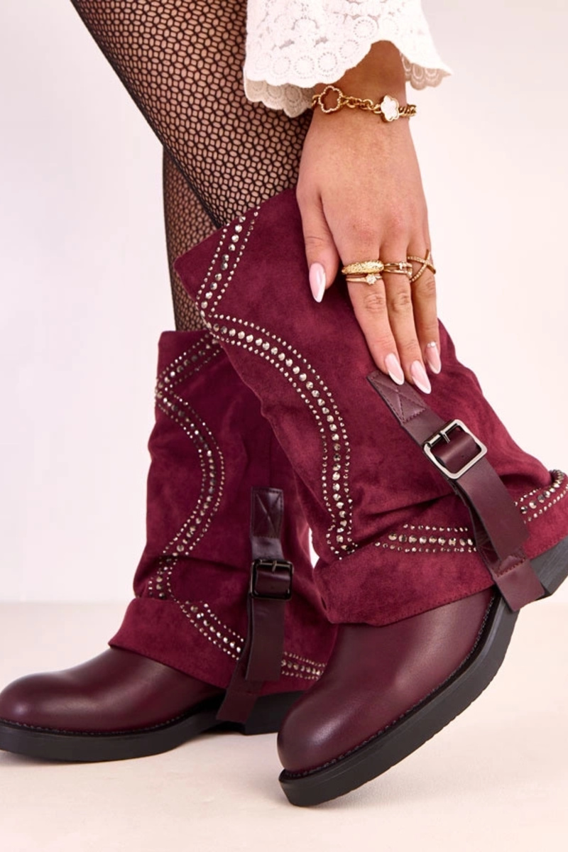 Bordové čižmy s preloženou špicou, zdobené zirkónmi Ginny