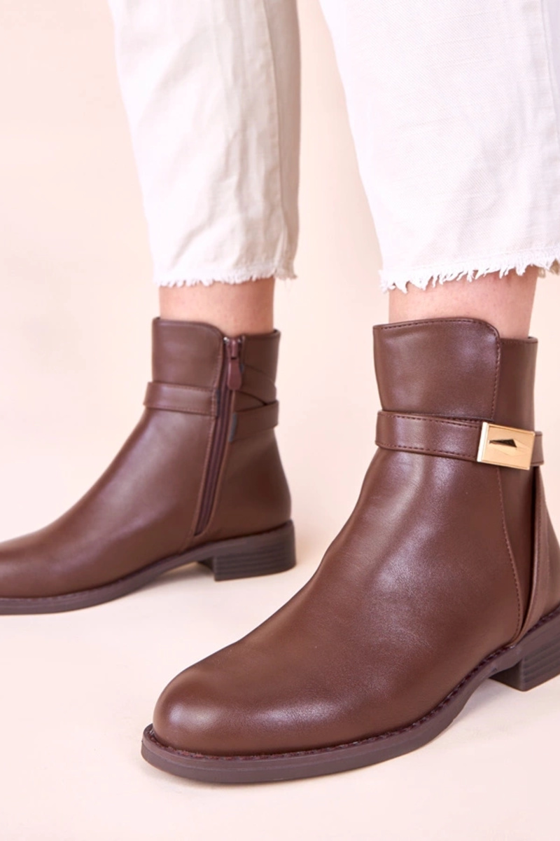 Hnedé klasické čižmy s zlatou ozdobou na remienku Nefera