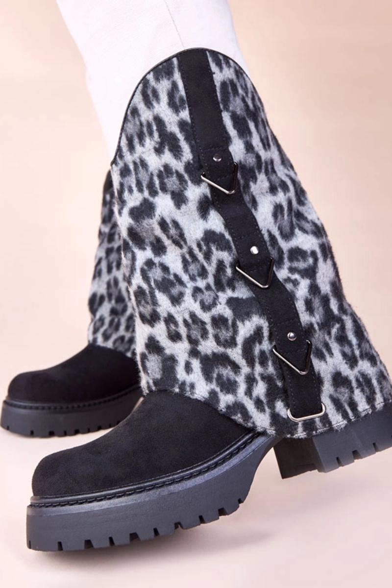 Čierne čižmy s tigrovaným obalom Kaylia