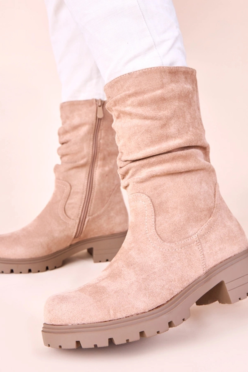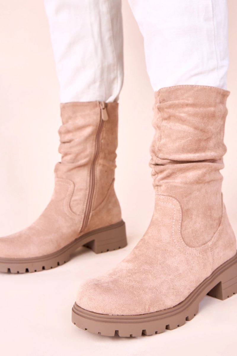 Pieskové polokozačky na platforme s vráskami Malha