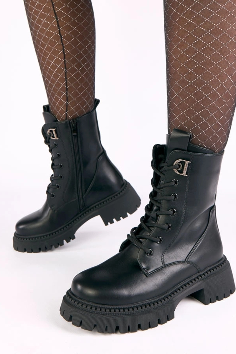 Čierne kotníkové topánky na platforme zdobené zirkónmi Mathia