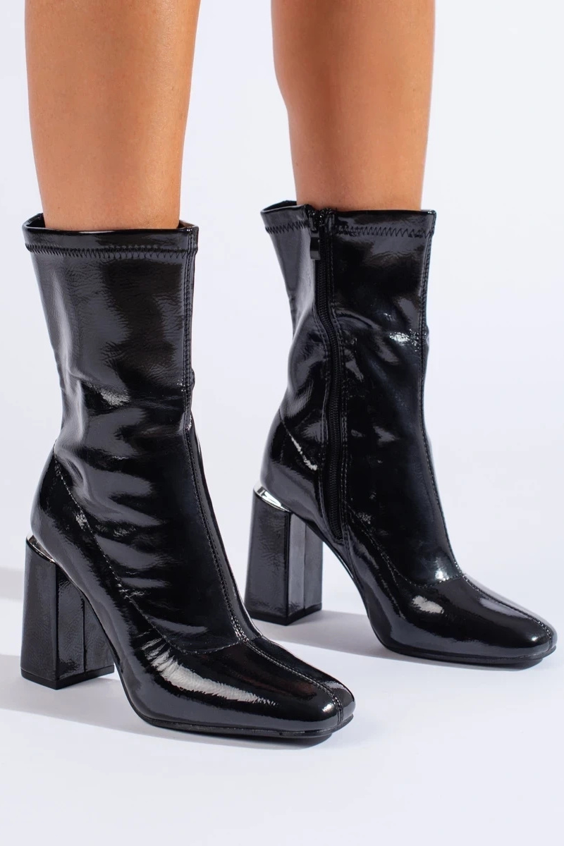Vysoké dámske topánky na podpätku vyrobené z lakovanej umelej kože
