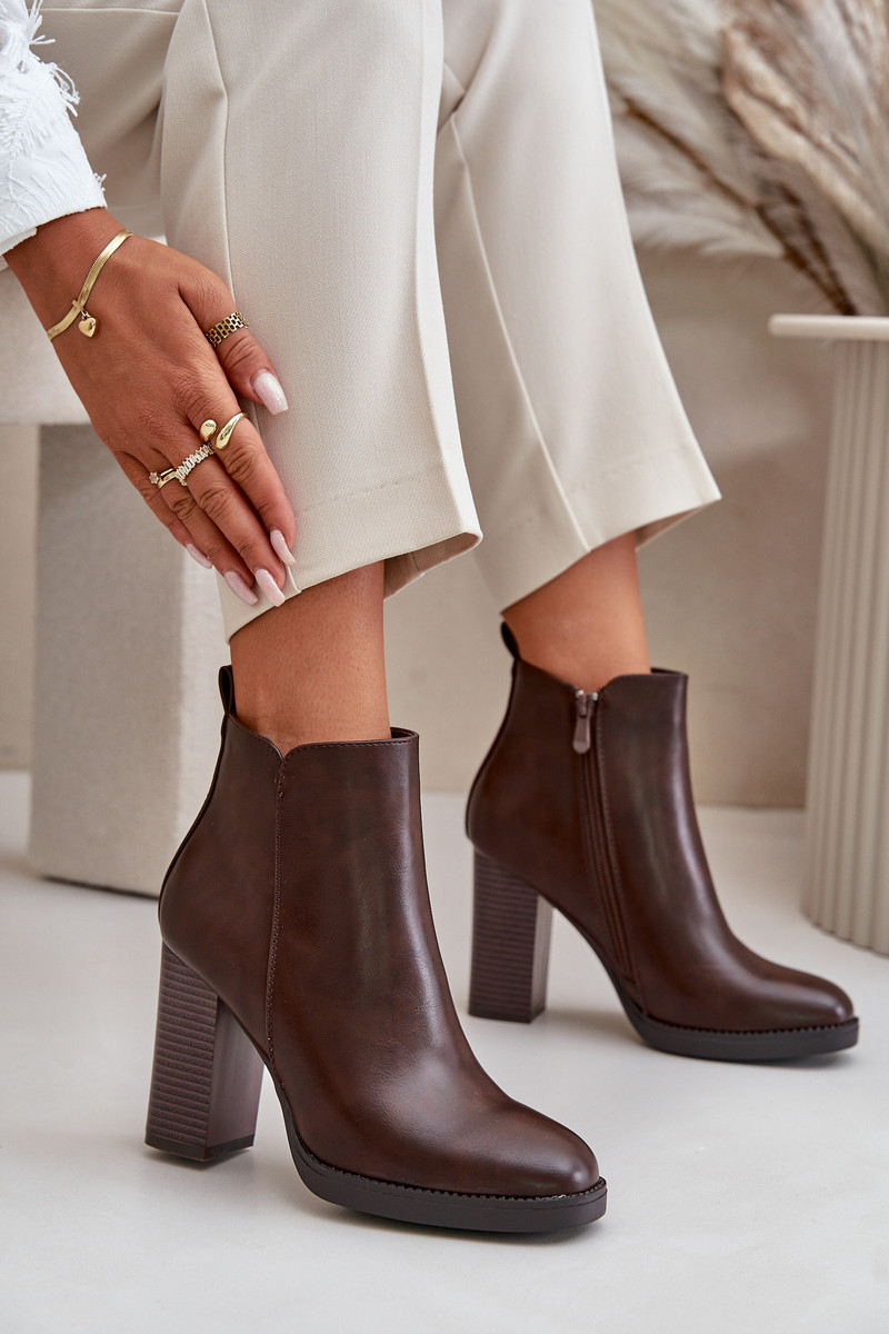 Zateplené dámske členkové topánky z umelej kože tmavo hnedej farby Teresine