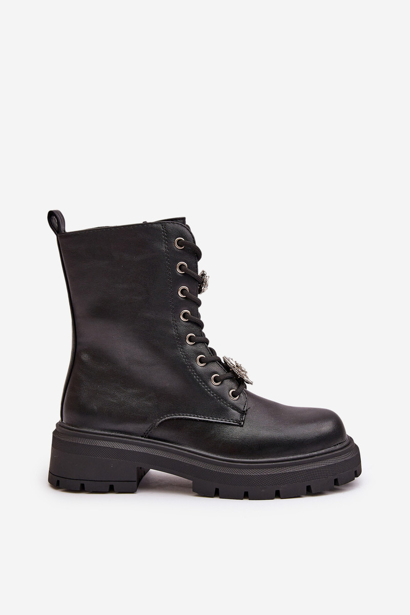 Pracovné členkové topánky Dámske Eko Kožené Z Przypinkami čierna Kristines