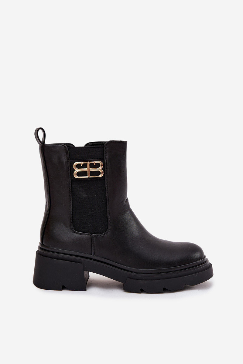 Čierne teplé dámske členkové topánky so zlatými detailmi Serene