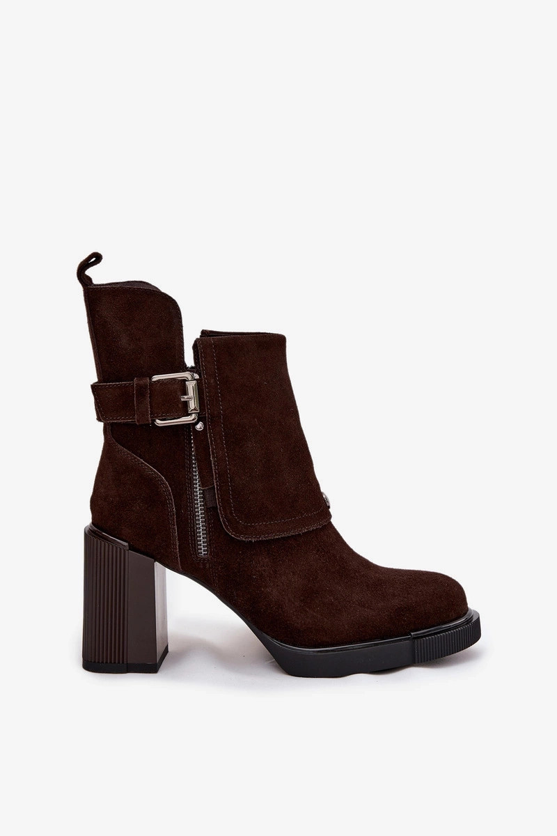 Čižmy z prírodného semišu s podpätkami a sponami, Vinceza 91152, čokoládovej farby
