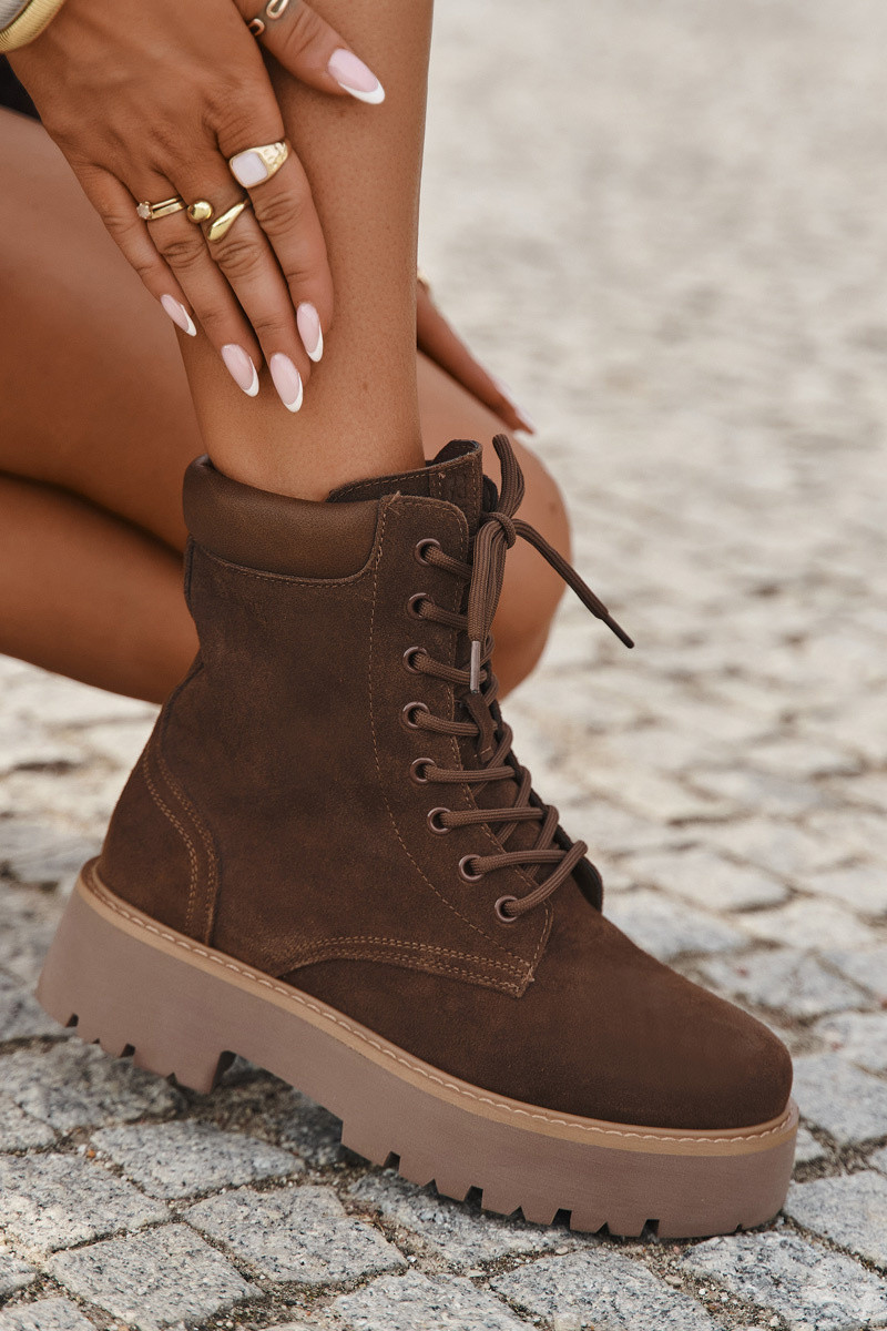 Zamskové dámske čižmy s šnúrkami Big Star SS274792 hnedé