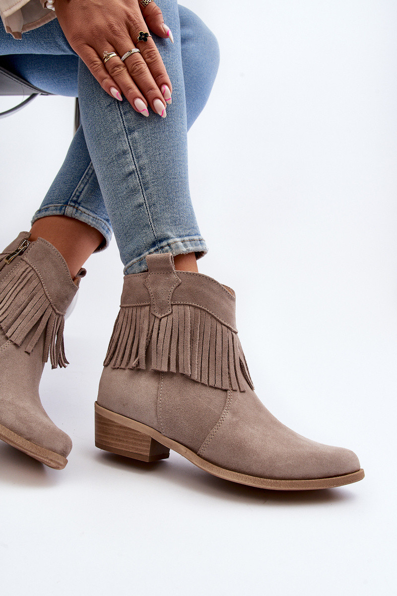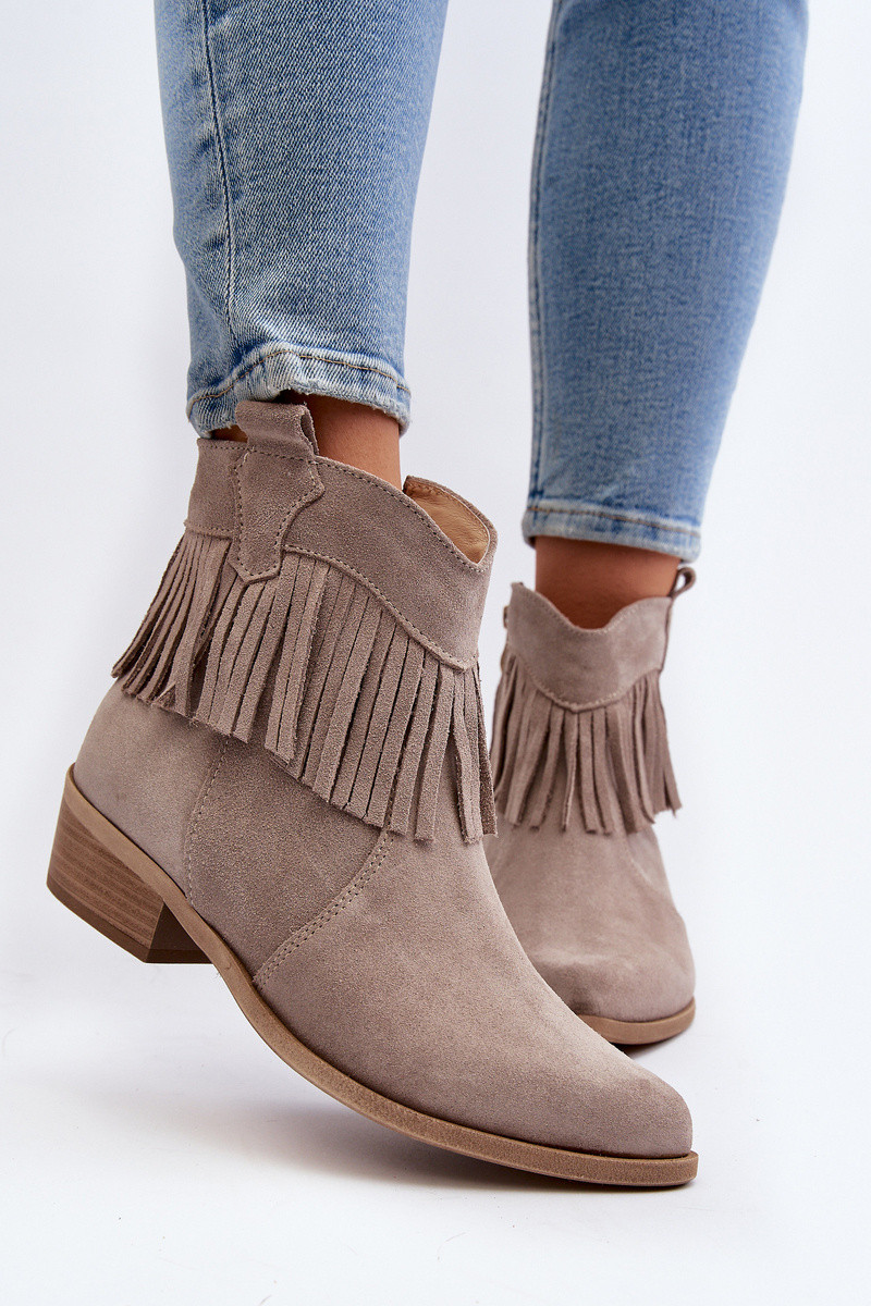 Zazoo 3430 Semišové topánky Dámske so strapcami farba cappuccino