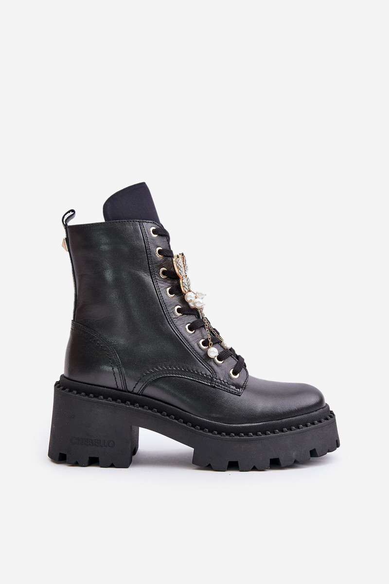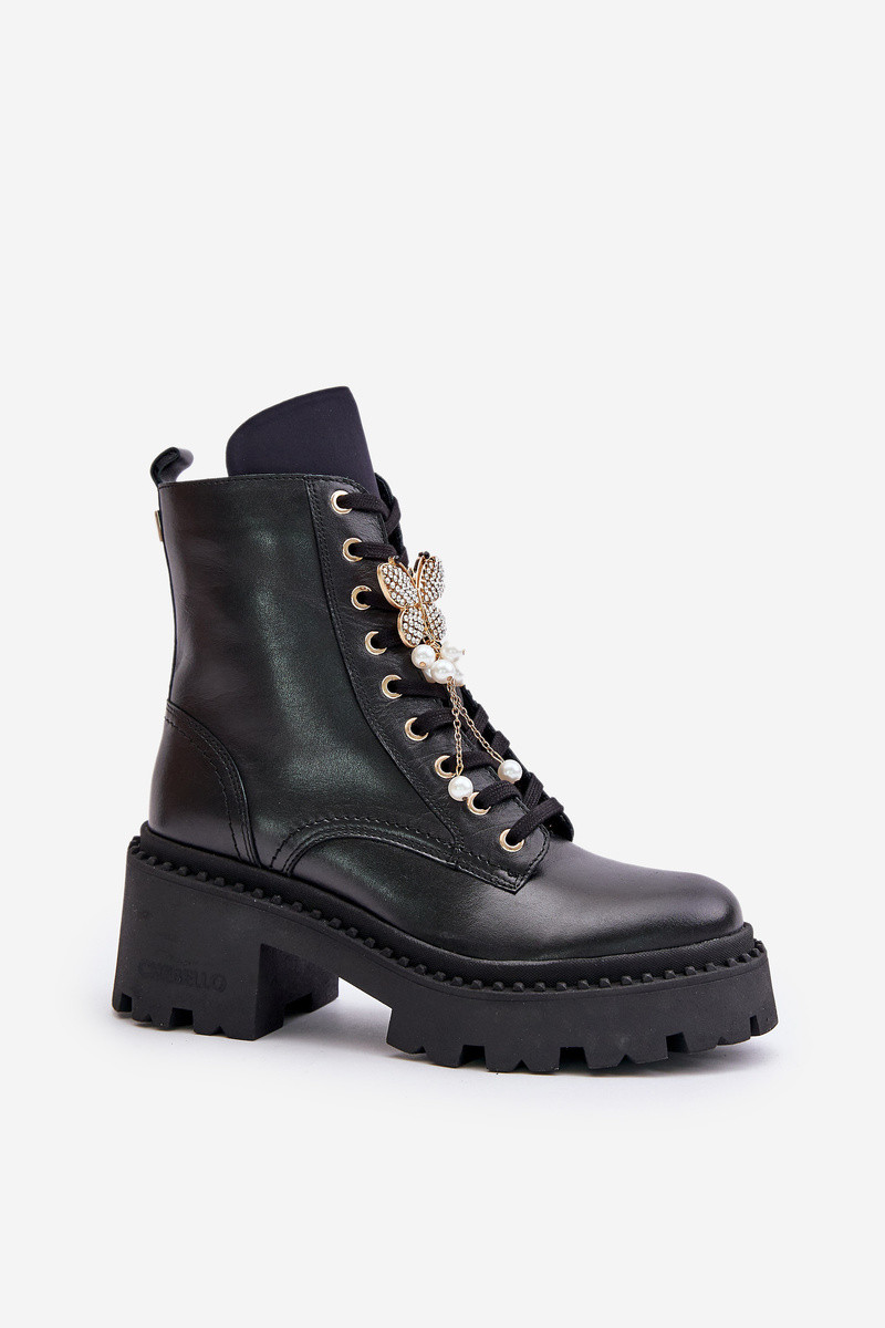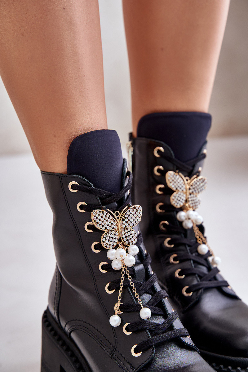 Kožené Pracovné členkové topánky DámskeMotýlem čierna CheBello 4590