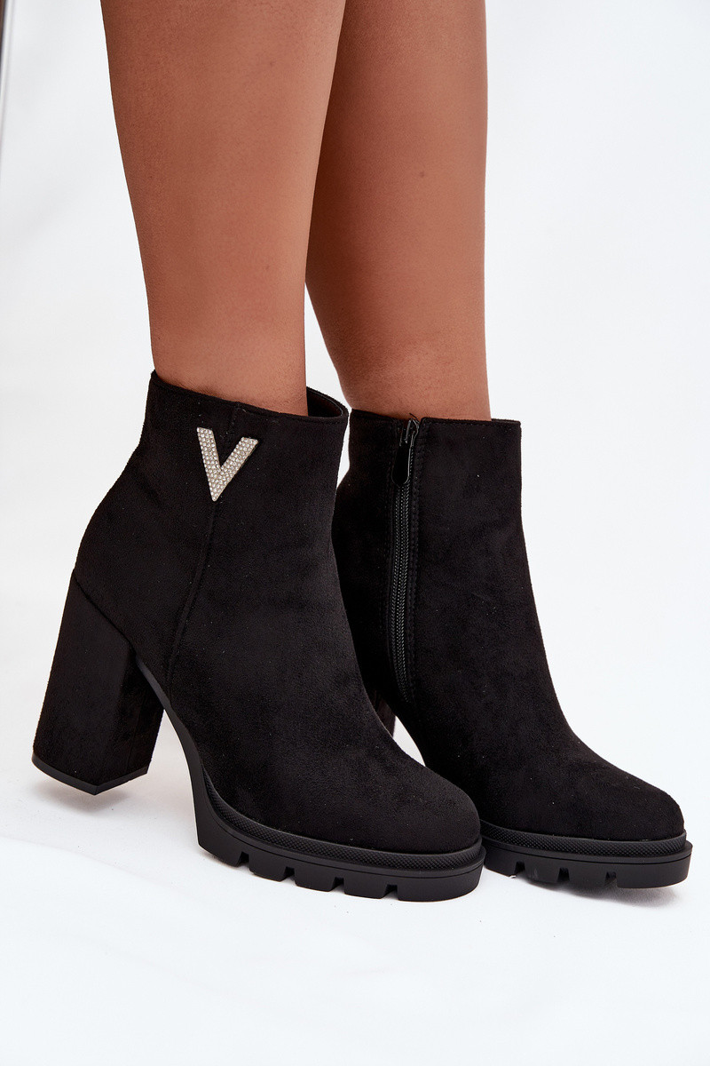 Dámske čižmy zahriať sa s podpätkami S Ornatem Detalem čierna Briella