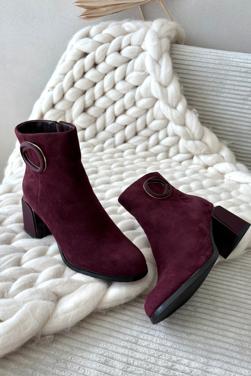 Semišové teplé čižmy na podpätku s ozdobnými detailmi Artiker 57C0016 bordovej farby