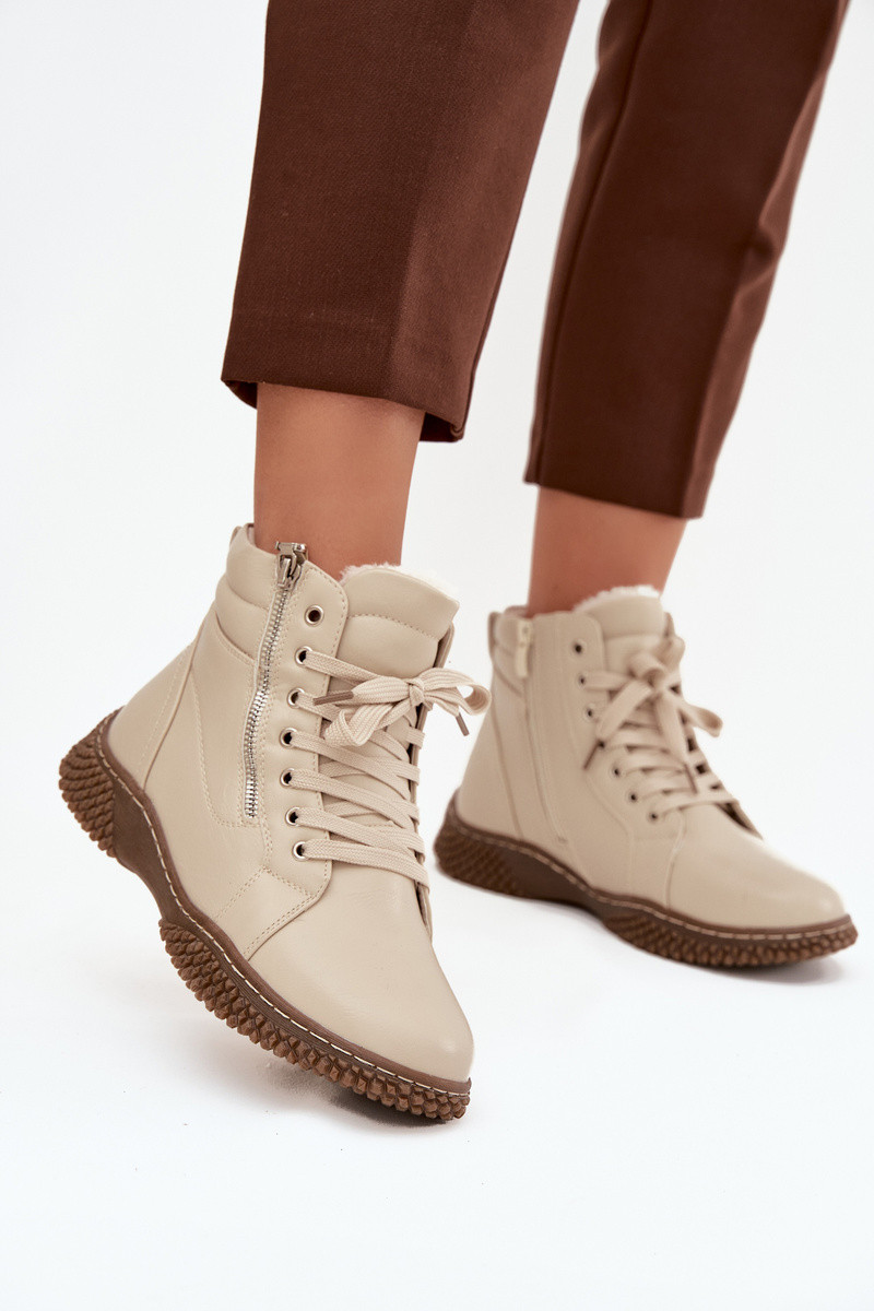 Dámske čižmy zahriať sa s kožušinou vo vnútri z eko kože béžová Ulverina