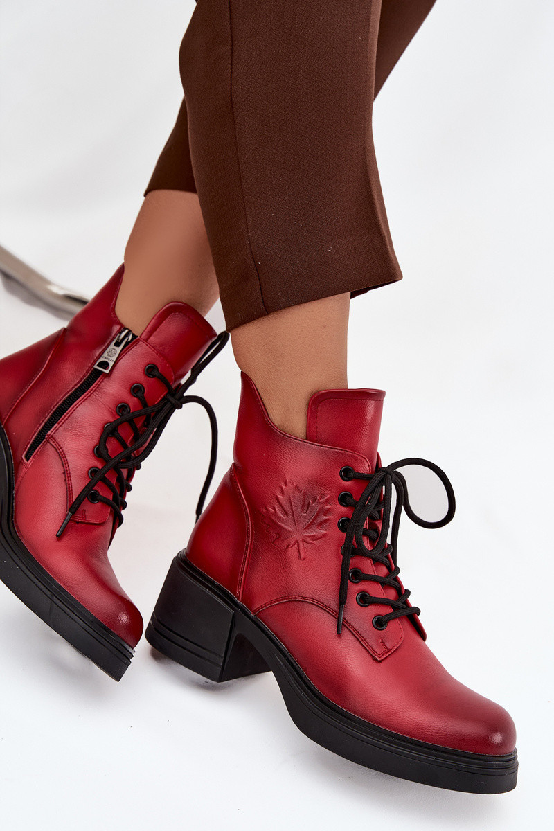Dámske členkové čižmy z prírodnej kože s chlpatými detailmi, zateplené, Vinceza 39950 červené