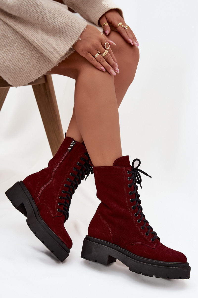 Pracovné členkové topánky DámskeZapnutéturalnego zo semišu zahriať sa Zazoo 4213 bordová